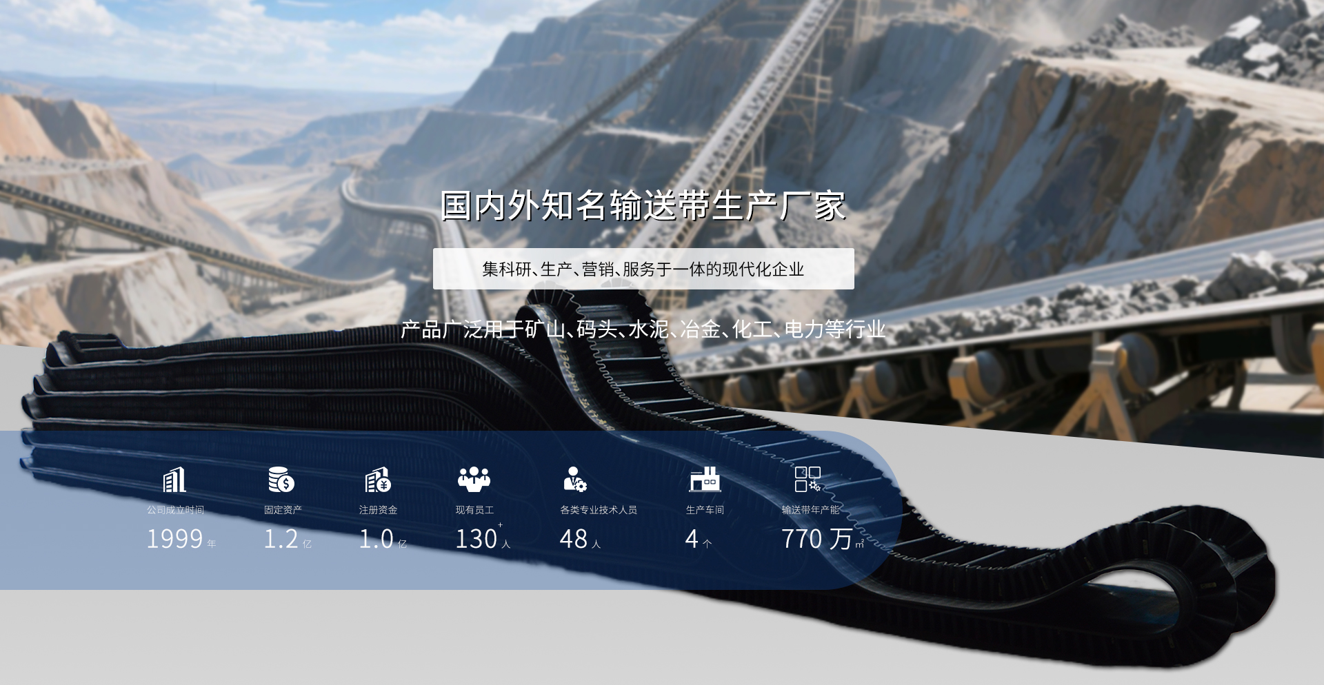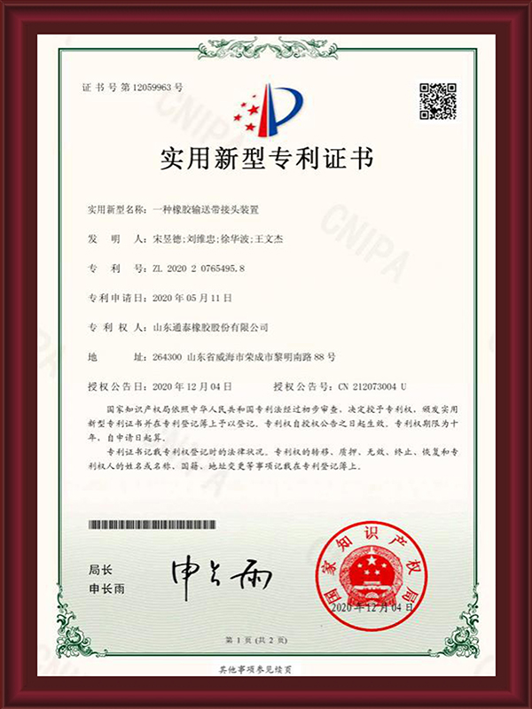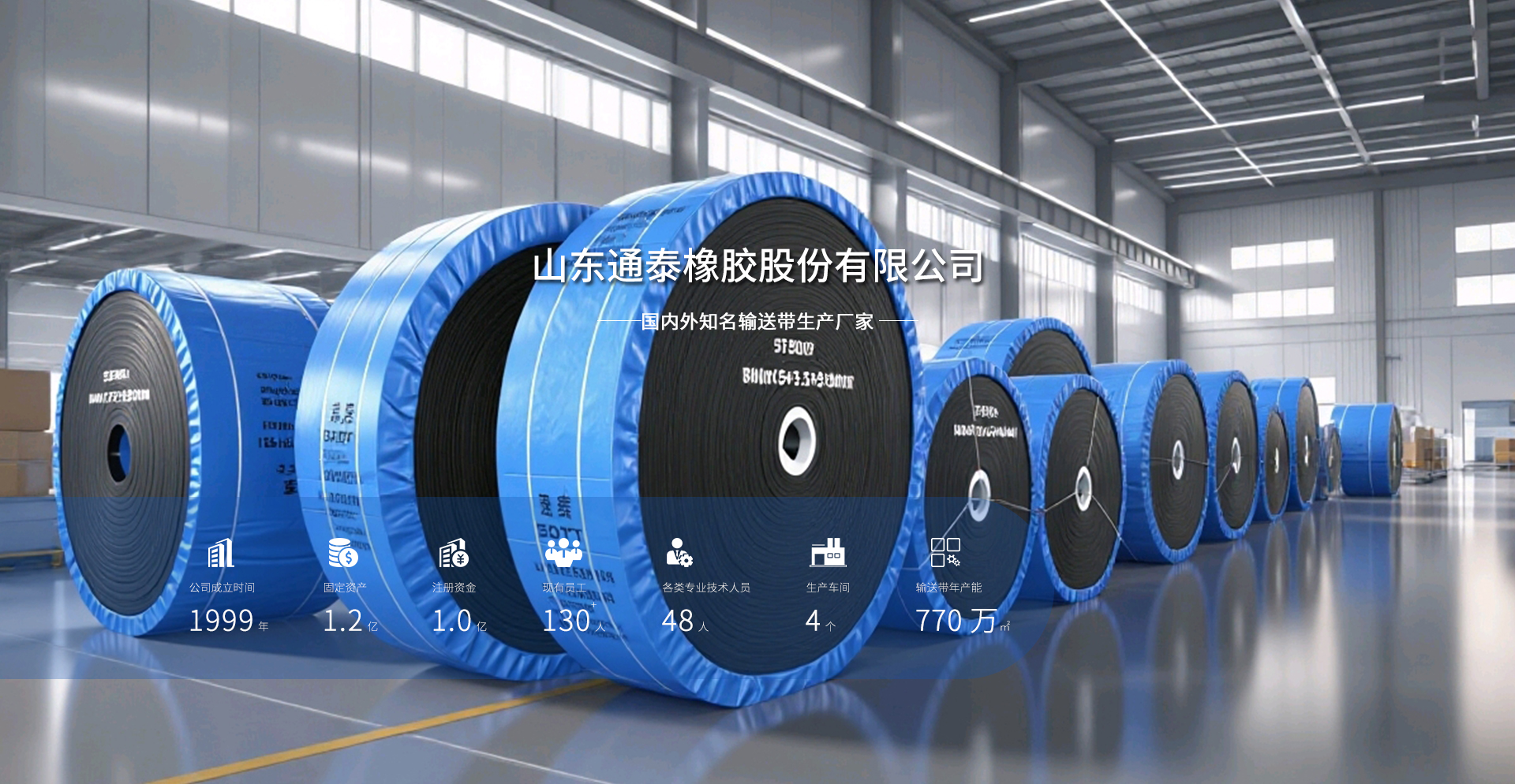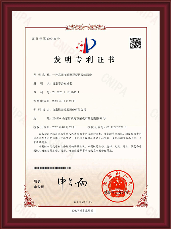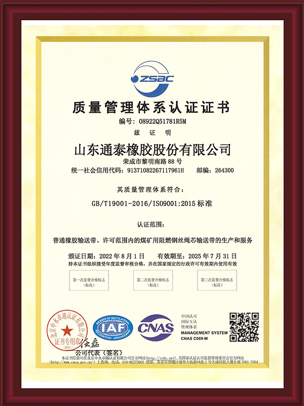山東通泰橡膠股份有限公司成立于一九九九年,經過二十多年的發展,已成為一個集科研、生產、營銷、服務于一體的現代化企業,大傾角波狀擋邊輸送帶技術國內領先。